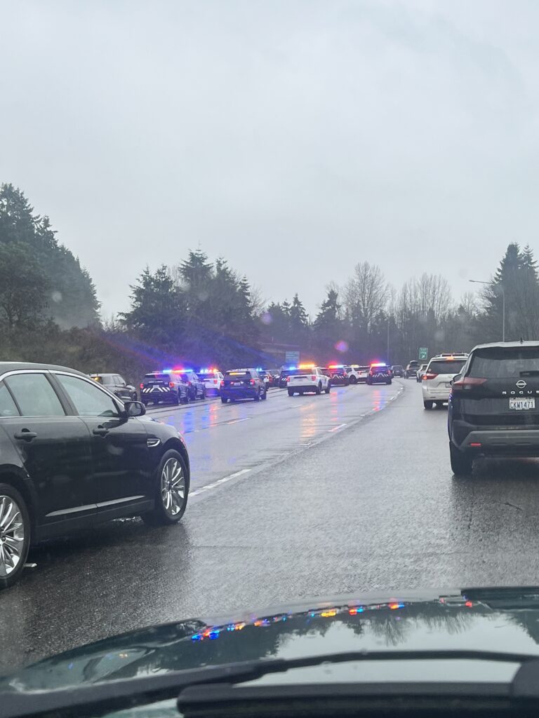 According to WSP Trooper Rick Johnson, the incident began when the lieutenant responded to a report of a pedestrian running across the freeway near Seattle’s Northgate neighborhood.