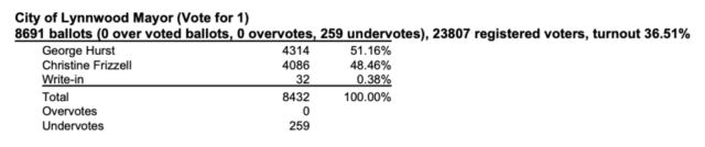 Although she doesn’t have plans to seek elected office again, Frizzell told My Lynnwood News that she isn’t going anywhere. She said she plans to continue serving the community though involvement with local nonprofits or groups such as Snohomish County League of Women Voters or the Sno-Isle Library Board.