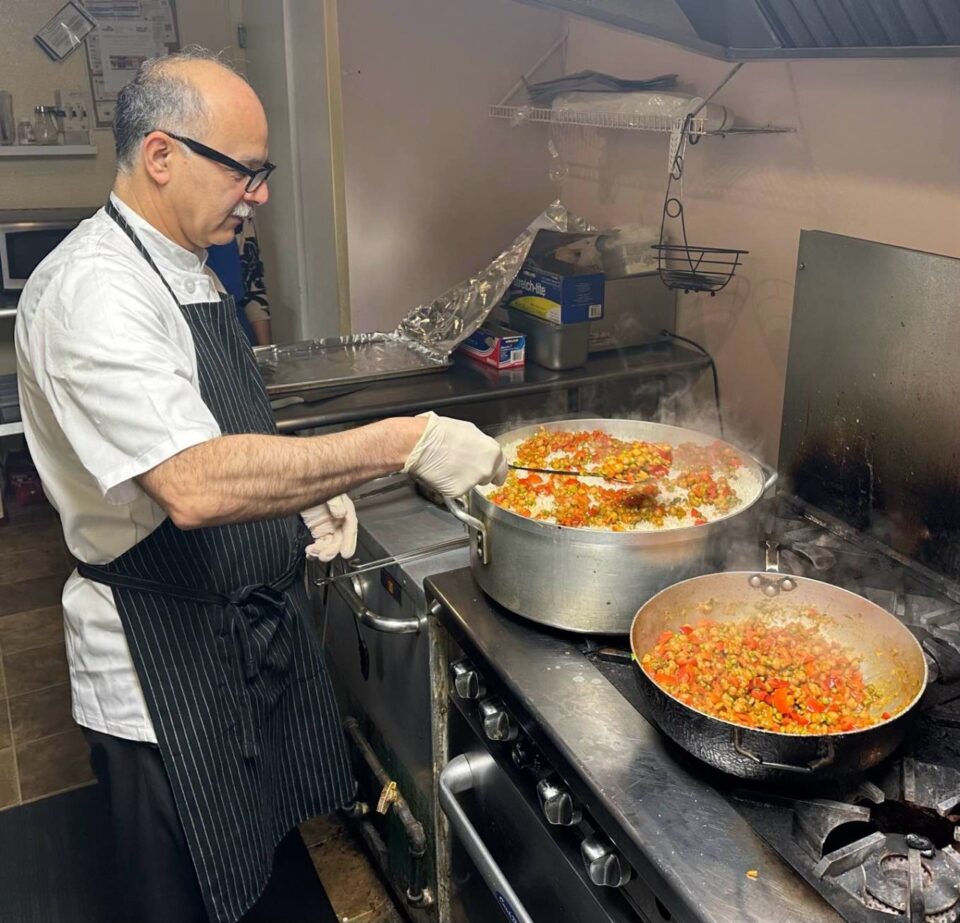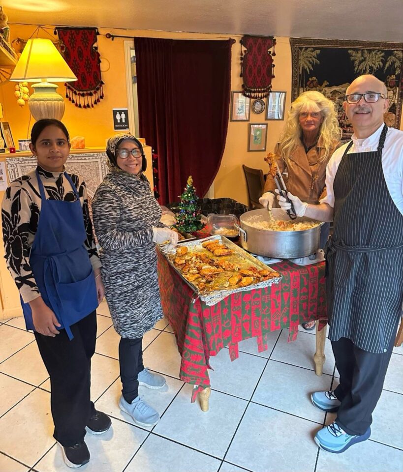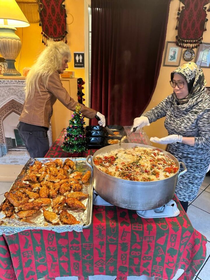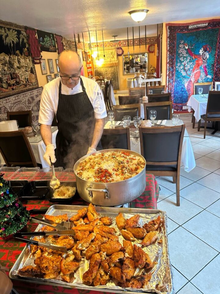 Caravan Kebab owner and chef Shahzad Raja and several volunteers distributed more than 125 meals of roast chicken and rice pilaf to people in need on Christmas Day.