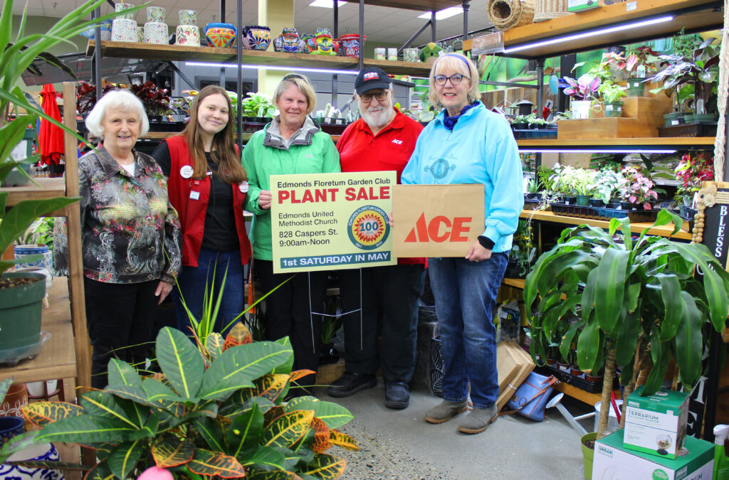 Members of the Edmonds Floretum Garden Club received a generous donations of gift cards and materials from Ace Hardware of Lynnwood for the club’s upcoming plant sale. The annual plant sale and boutique will run from 9 a.m. to noon Saturday, May 3 at the Edmonds United Methodist Church, 828 Caspers St.
