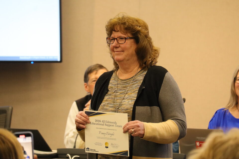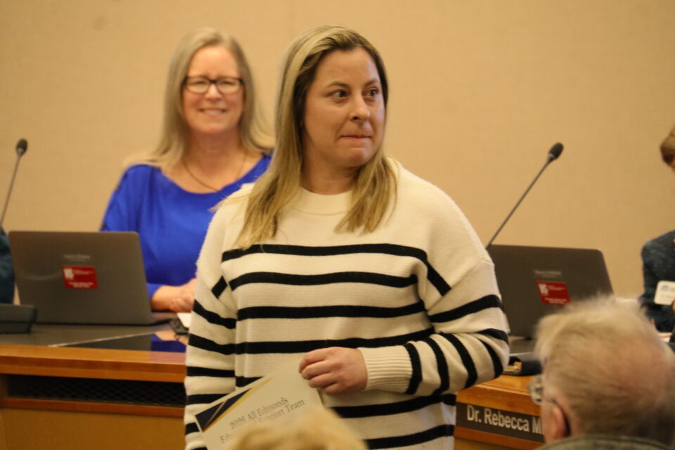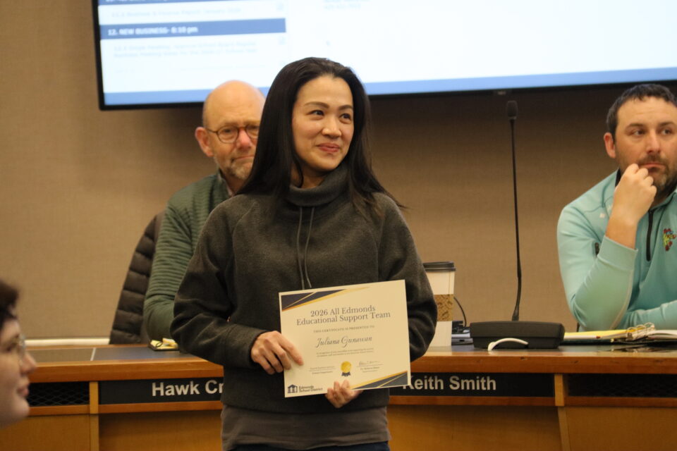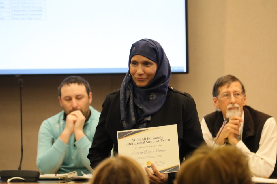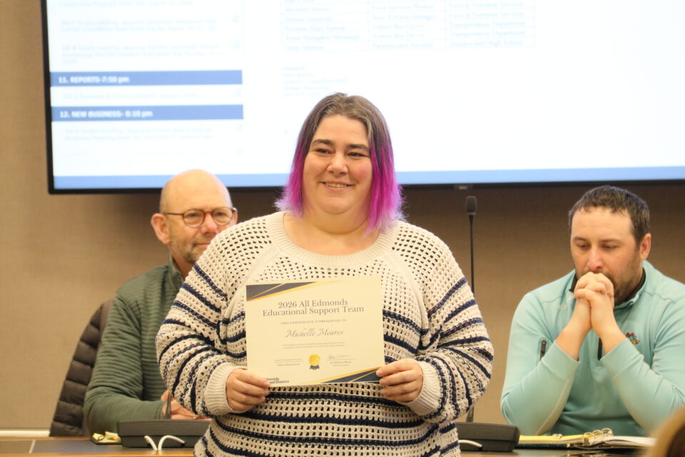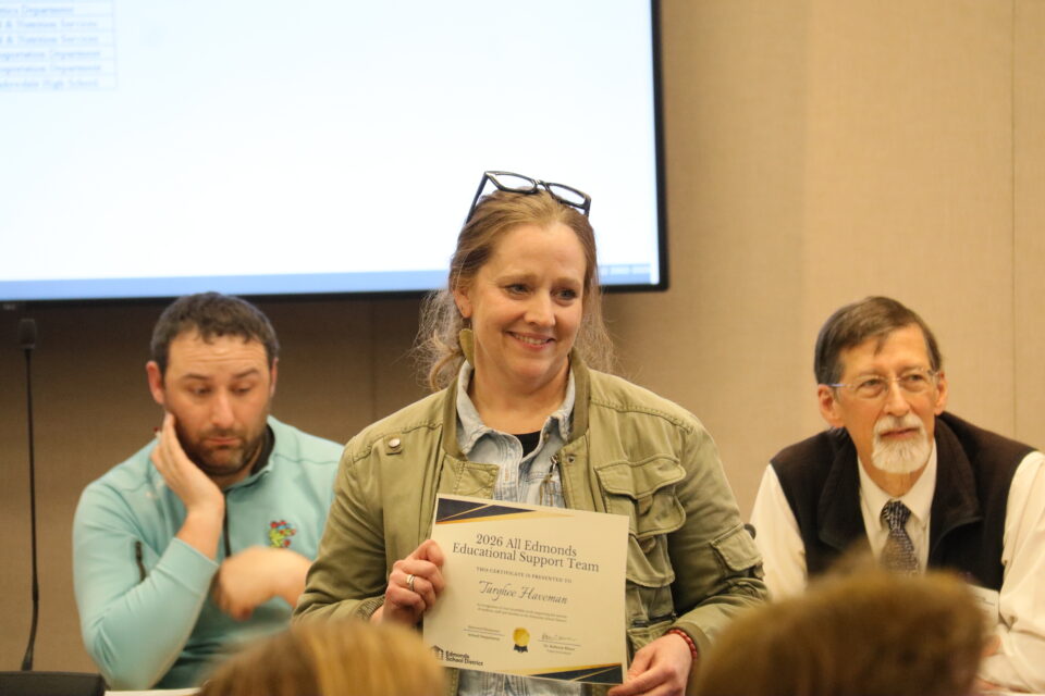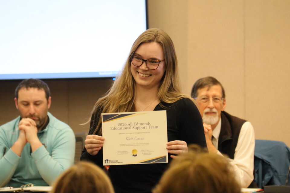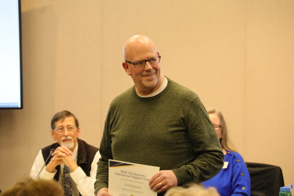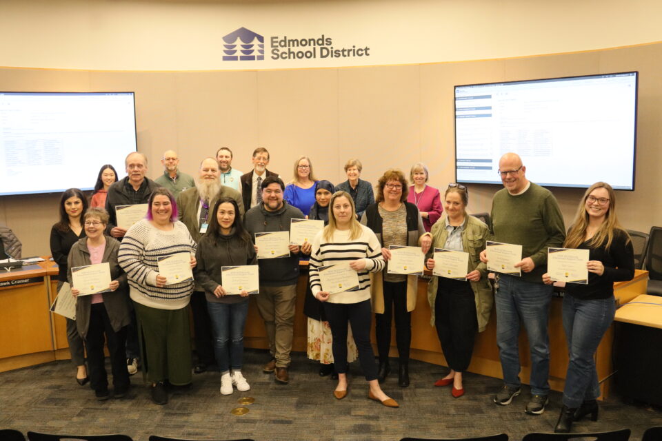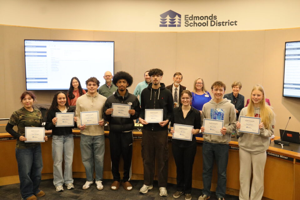 The board honored eight student athletes and 13 Edmonds School District staff for their achievements and contributions.