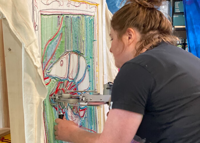 It’s time to learn to tuft! We’ll spend the afternoon shooting yarn out of a gun into fabric to create some amazing wall hangings.