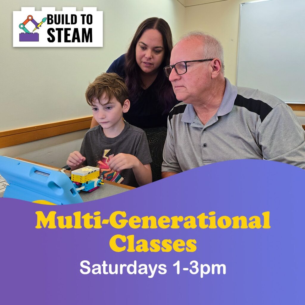 At Build to STEAM, on Saturdays from 1pm-3pm, there is LEGO Building for the whole family! There are fun LEGO build challenges to compete in and to win prizes.