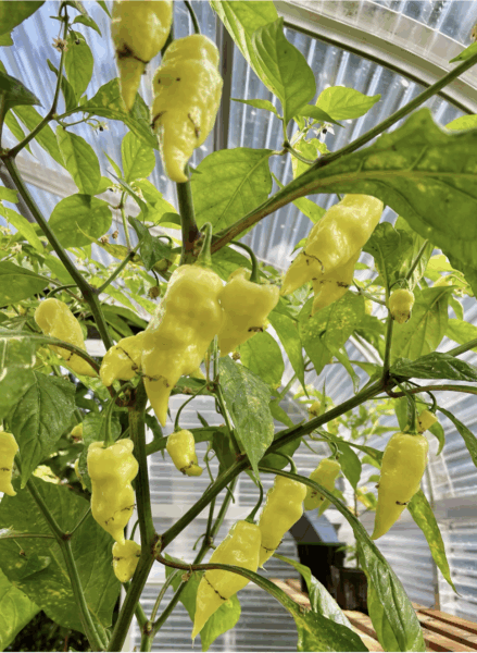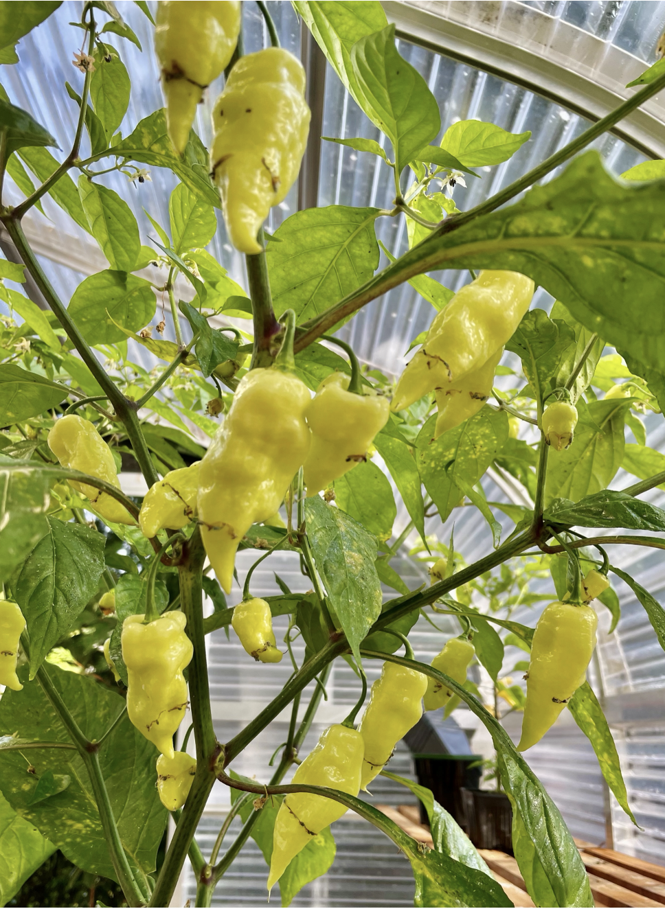I grow bell, jalapeno, shishito and habanero peppers from seeds, starting them early in the greenhouse on heating mats. They grow very slowly in the greenhouse until about July because I only add heat when the temperature dips below 45 ° F (a big brrrrrrr for peppers). They hang in there until July when summer weather finally kicks in and I typically start harvesting in September through October.