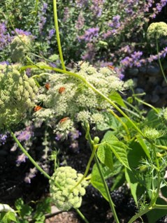 If your carrots bolt, you will get loads of seeds, plus pretty flowers and lots of beneficial insects like these soldier beetles.