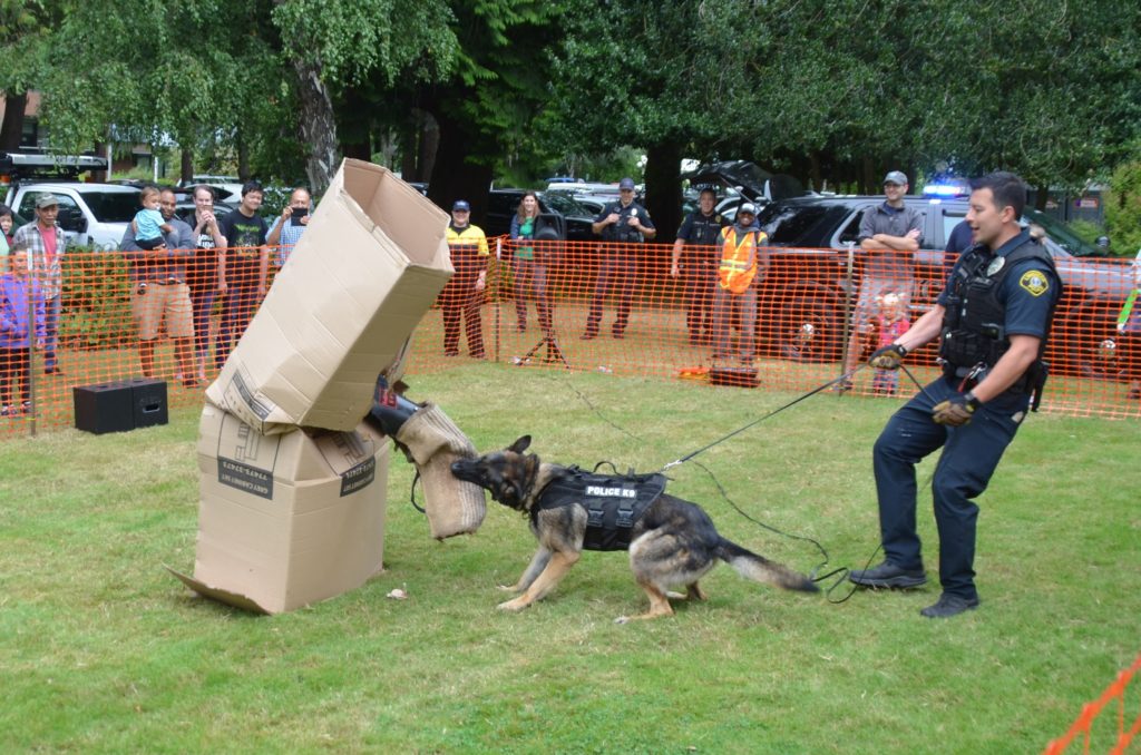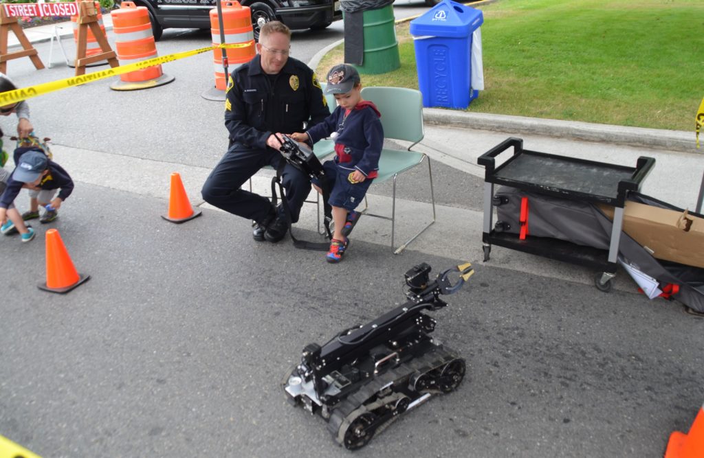 Held on 44th Avenue West, which was closed from 194th to 198th Streets Southwest, the event included demonstrations from the Lynnwood Police Department’s K9 and motorcycle units, fitness and exercise lessons, and disaster preparedness tips. Kids and adults alike had a chance to tour fire trucks, ambulances and SWAT and police vehicles, as well as school and Community Transit buses, tractors, Mary’s Bubble Tow Truck and vactor trucks.