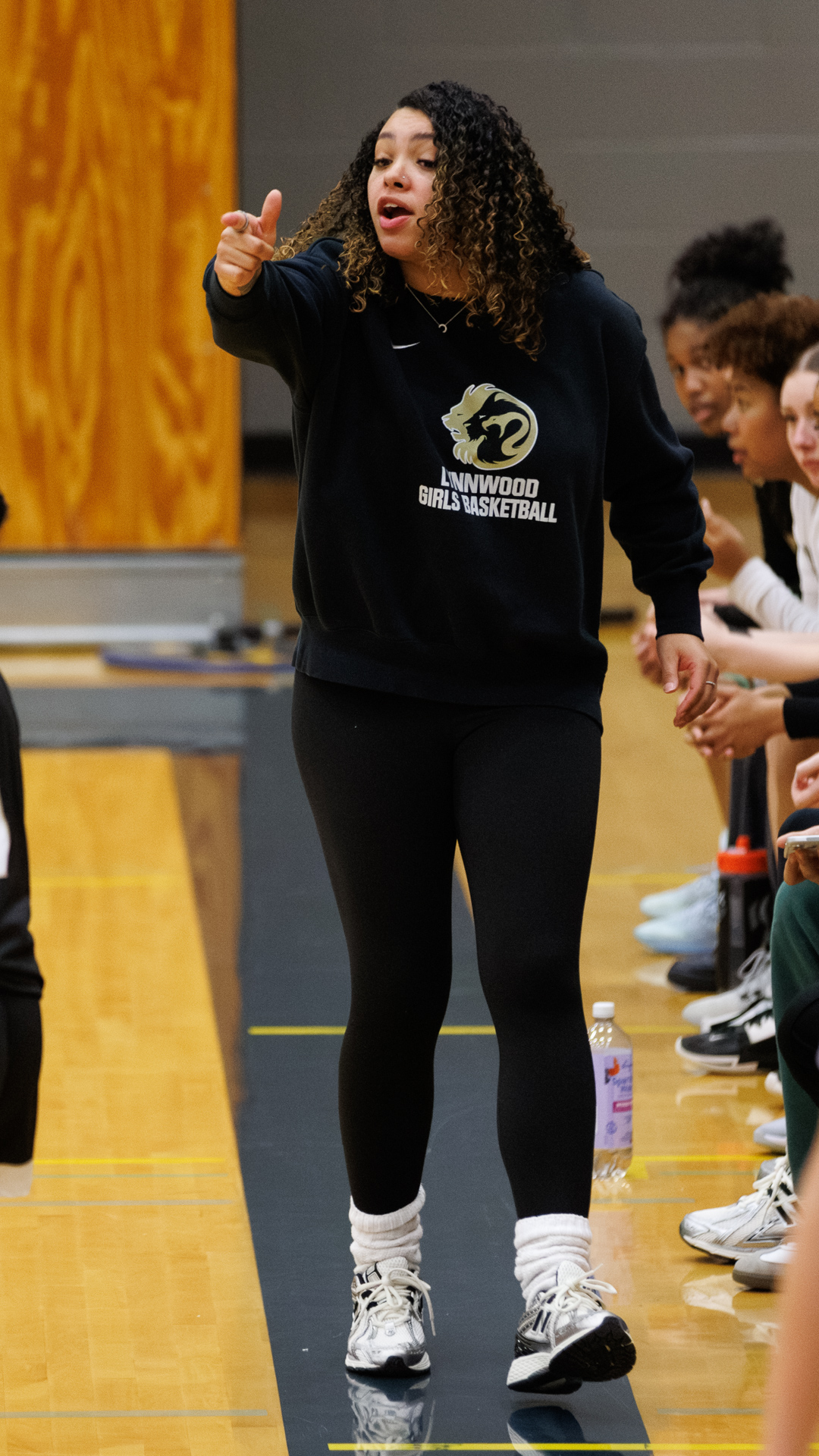Lynnwood head coach Valerie Bell calls out instructions to her team during free throws.