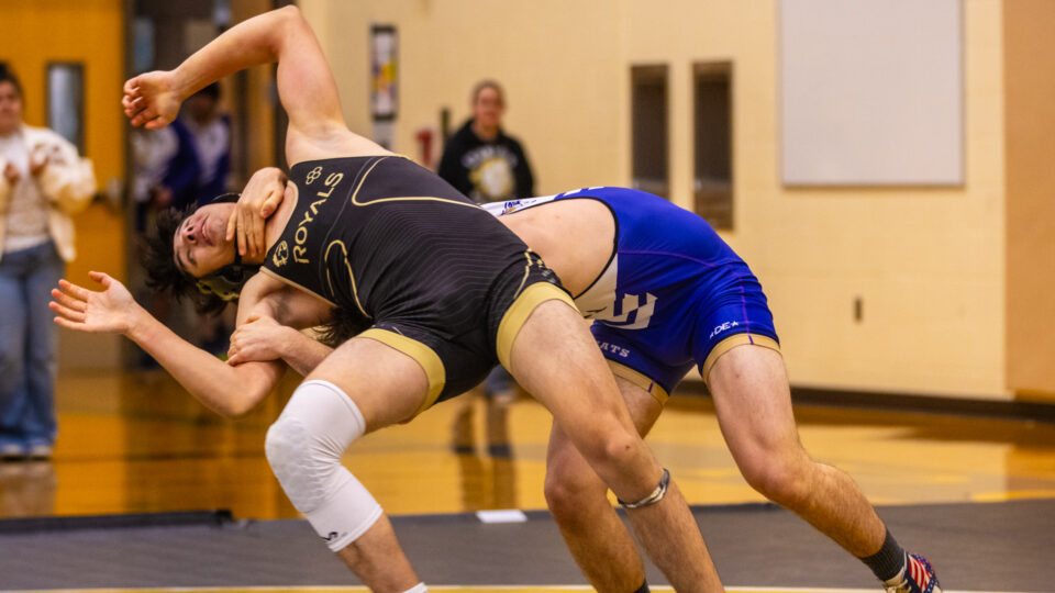 Lynnwood Royals junior Jared Sum takes down his Mount Vernon opponent.