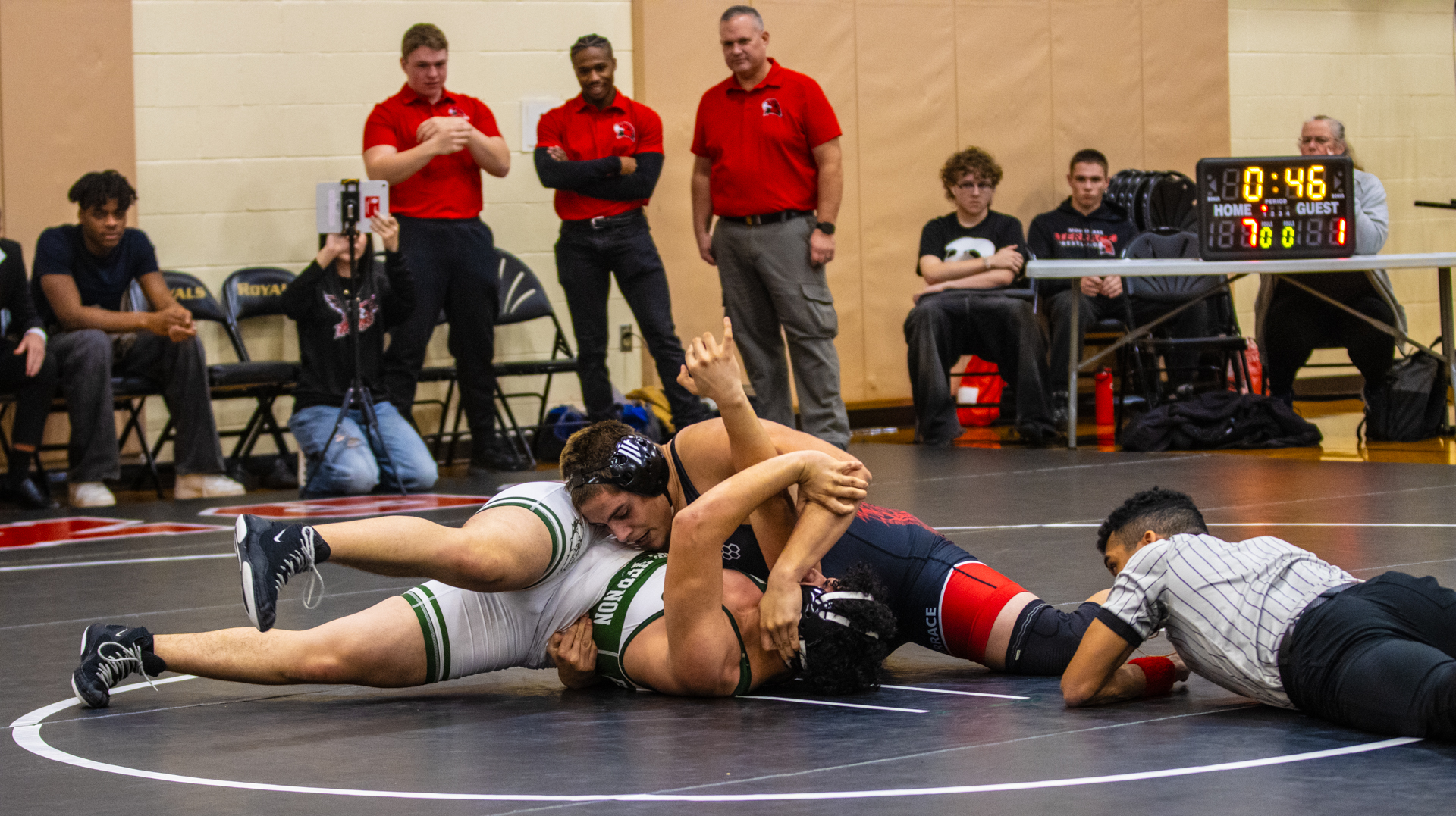 Mountlake Terrace senior Ryan Pineda is moments away from a win over his Oak Harbor opponent.