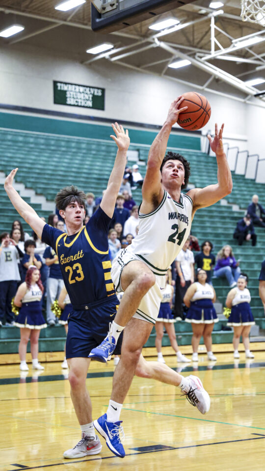 The Edmonds-Woodway Warriors kept their season alive and advanced to the 3A State Tournament with a 30-point victory over the Everett Seagulls, winning 69-39. DJ Karl led the Warriors with 16 points, 10 of those coming in the first half. Julian Gray scored eight of his 12 in the first half as the Warriors built a 34-17 lead at the break and never looked back.