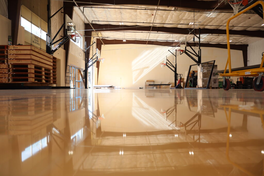 New visitors to North Lynnwood’s soon-to-open Shoot 360 basketball training facility will be greeted by the scent of fresh wooden floors and bright, high ceilings with six hoops, six passing cages and an NBA-size half court.