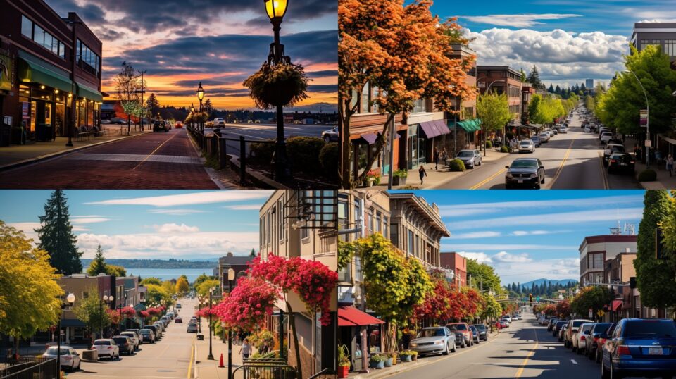AI-generated images of Downtown Edmonds via Midjourney. (Images by Nick Ng)