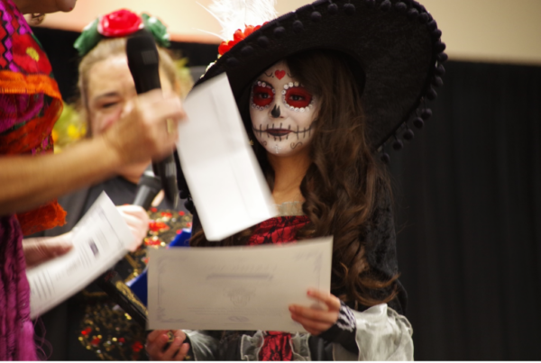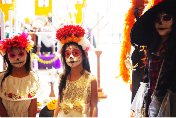 Isabella, Miranda and Angela (L-R) show off their costumes at the Dia de los Muertos event.