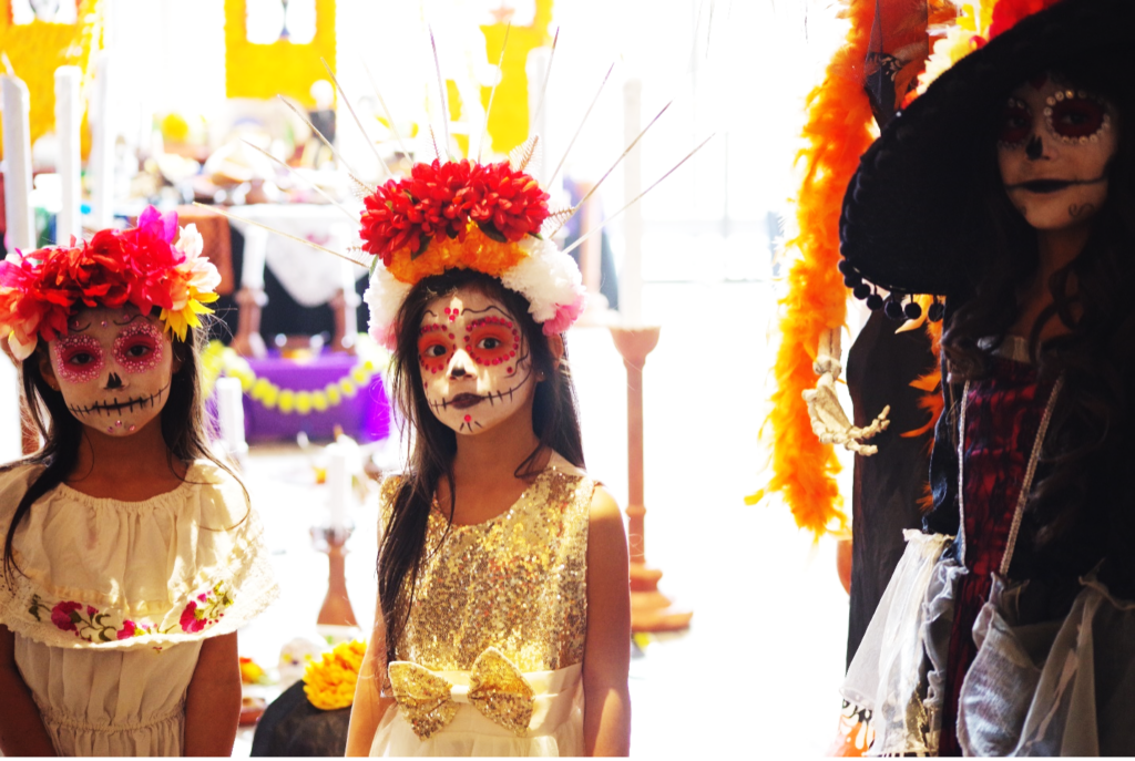 Isabella, Miranda and Angela (L-R) show off their costumes at the Dia de los Muertos event.