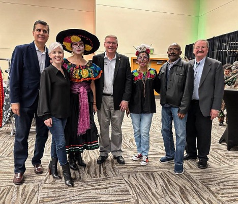 L-R: Deputy Consul Gerrado Javier Guiza Vargas, Consultate of Mexico in Seattle; Lynnwood Municipal Court Judge Valerie Bouffio; Lynnwood City Councilmembers Julieta Altamirano-Crosby and George Hurst; Karina Gasperin, executive director of the Afro Latino Festival; Wally Webster of the ACCESS Project and Snohomish County Executive Dave Somers (Photo courtesy Karina Gasperin)