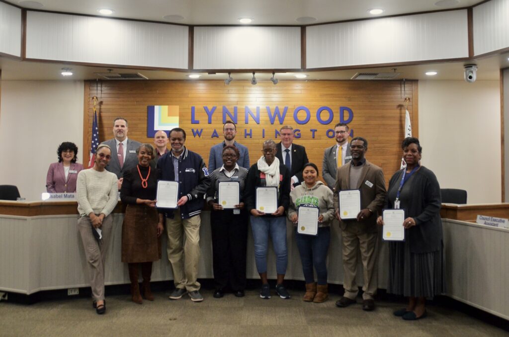 The meeting began with a proclamation designating February as Black History Month. The City honored several community leaders, including Lynnwood Neighborhood Center Director Meisha Wangerin, and Mountlake Terrace Mayor Steve Woodard and Councilmember William Page Jr.