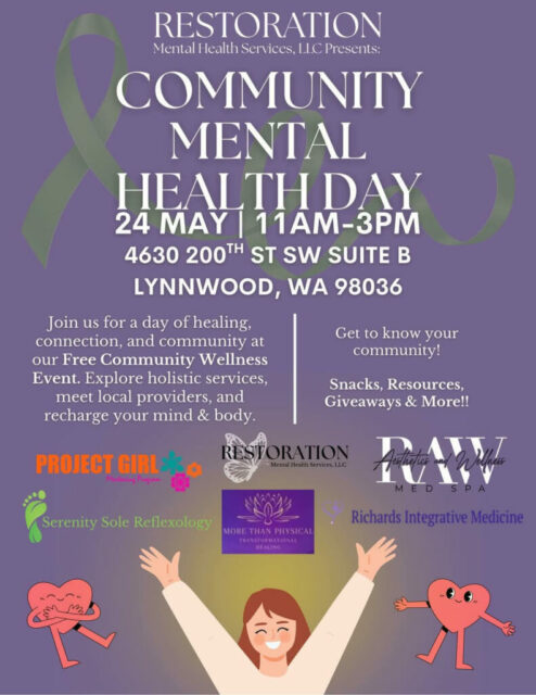 RAW Aesthetics and Wellness Med Spa will host its first community event in celebration of Mental Health Month on Saturday, May 24 from 11 a.m. to 3 p.m. at 4630 200th St. S.W. Suite B in Lynnwood.