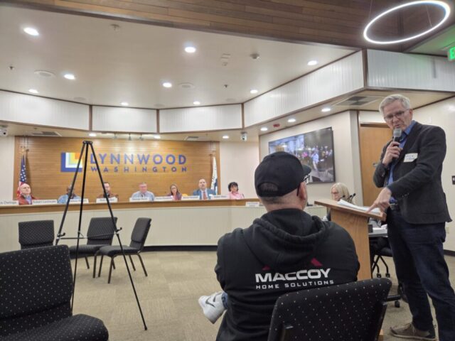 “We’re gonna have this little oasis where you’ve got an abundance of washers, dryers, showers, toilets and so on,” Steves said Wednesday during a Lynnwood City Council work session.