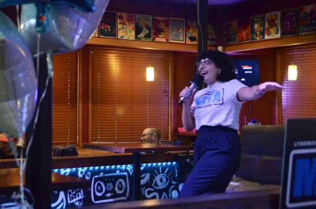 Along with free tacos for all, the party was a karaoke extravaganza, where Mata and others sang songs on a donation basis. She kicked off the night with a number dedicated to her opponent: Hit Me With Your Best Shot by Pat Benatar.