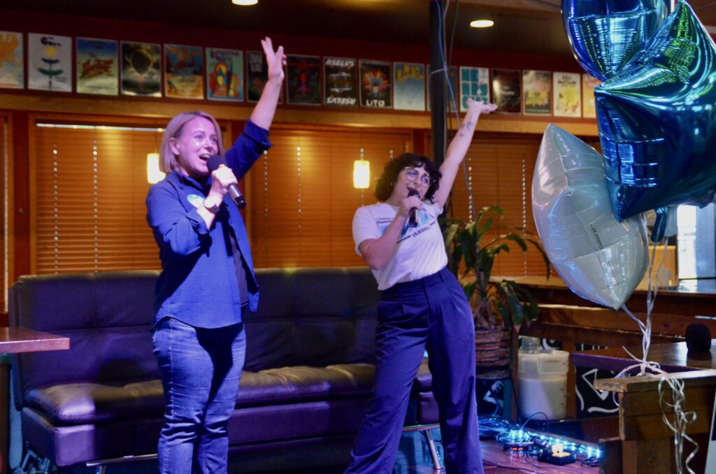 Along with free tacos for all, the party was a karaoke extravaganza, where Mata and others sang songs on a donation basis. She kicked off the night with a number dedicated to her opponent: Hit Me With Your Best Shot by Pat Benatar.