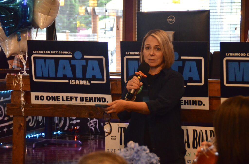 Among those backing Mata at the party were State Rep. Lauren Davis, Edmonds City Councilmember Chris Eck, Bothell City Councilmember Amanda Dodd and Lynnwood Councilmembers George Hurst and Derica Escamilla.
