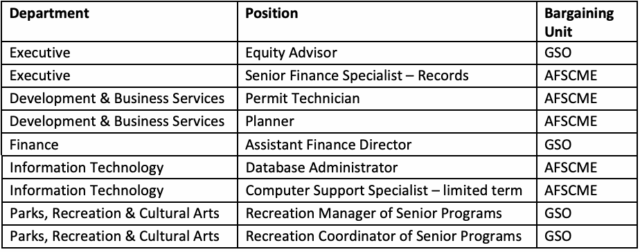 Mayor Frizzell chimed in: “The Council has had a list of possible [revenue] increases at their disposal since July,” she said. “Could you talk about the effect of the one-time revenue that was used to create 20 new positions and the attitude of the Council at that time?” she asked Director Meyer.