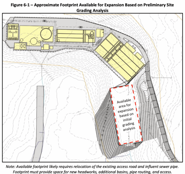 The first phase focuses on reshaping the site to make room for new treatment infrastructure, with an estimated cost of $26 million. Work includes clearing trees, excavating the hillside, rerouting a fish-bearing creek and realigning Bertola Road and a major sewer pipe. The creek relocation will require coordination with tribal, state and federal agencies and could include additional environmental protections – but those won’t be determined until after the SEPA review, Shirkhani said.