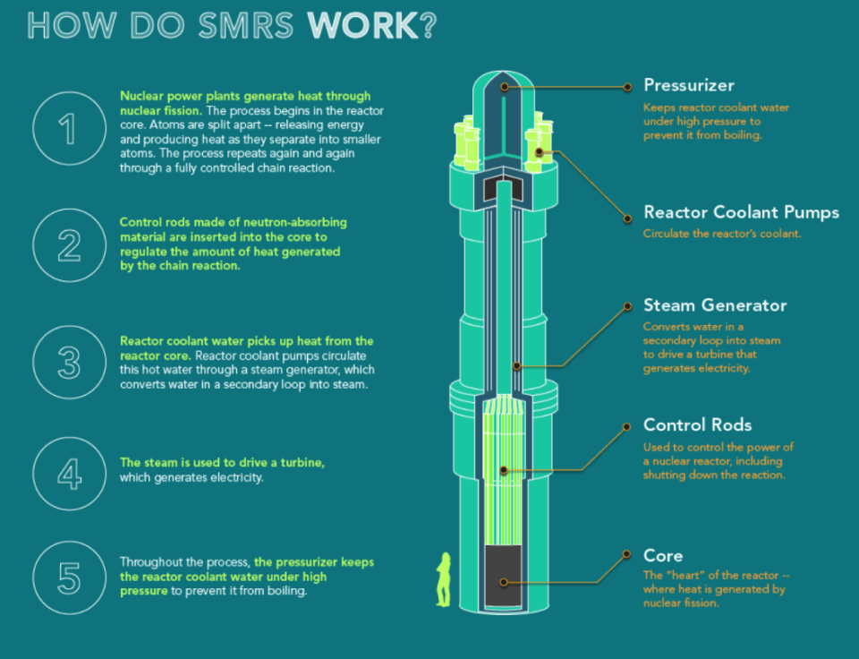 Each modular unit would be a mini-reactor capable of generating 50 to 300 megawatts of energy.