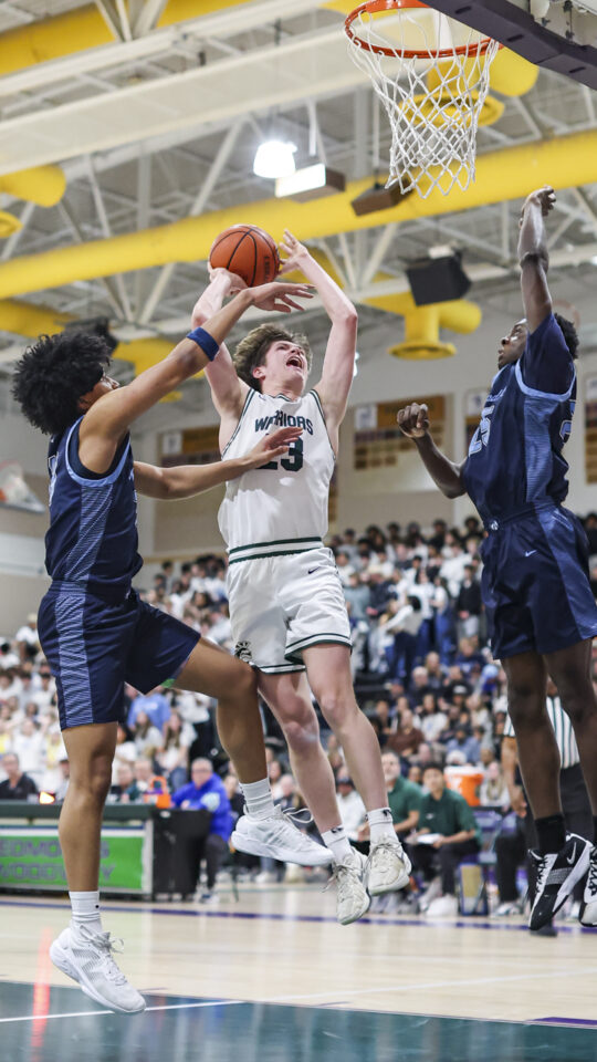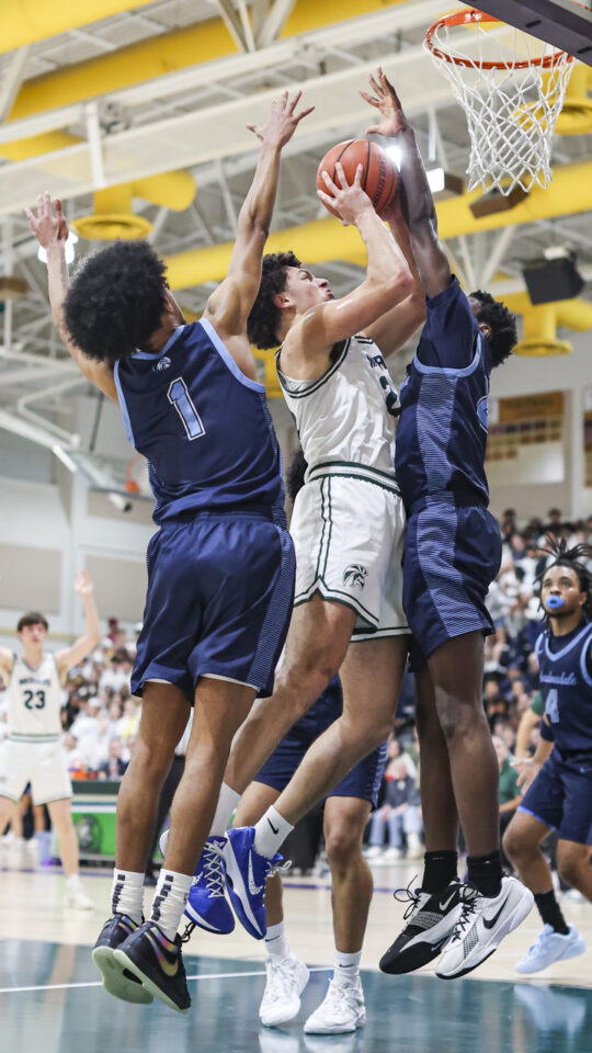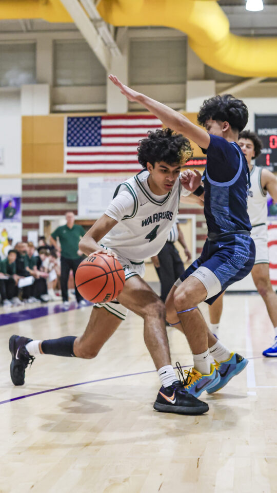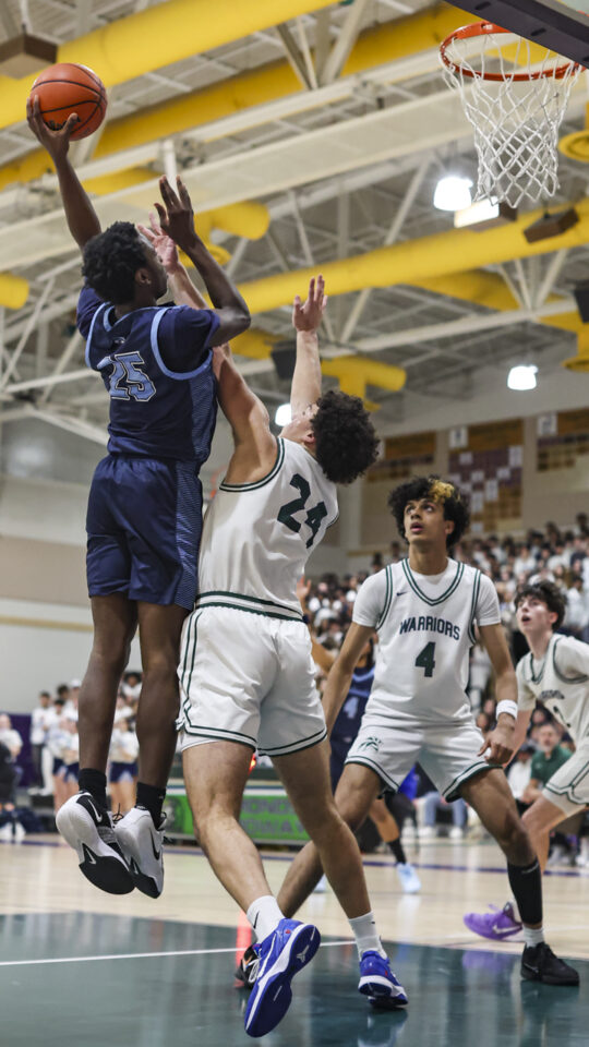 Friday’s contest was played at a frantic pace, especially in the first half, before full bleachers in the cavernous E-W gym. The game featured nine lead changes, seven before halftime.
