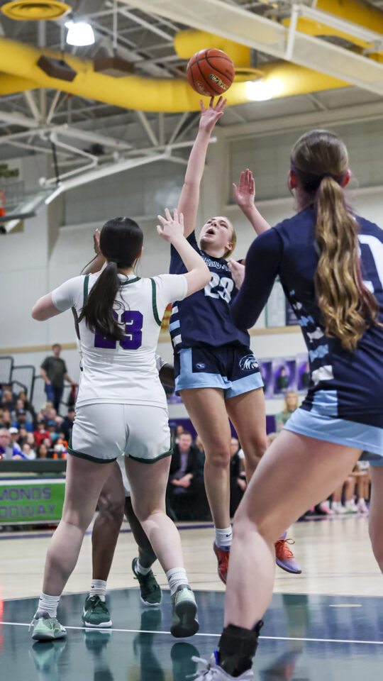 Edmonds-Woodway individual scoring: Finley Wichers 19, Zaniyah Jones 17, Amelia Faber 13, Sloane Franks 4, Jane Hanson 2, Madeline Kost 1, Amara Leckie, Audrey Rothmier,