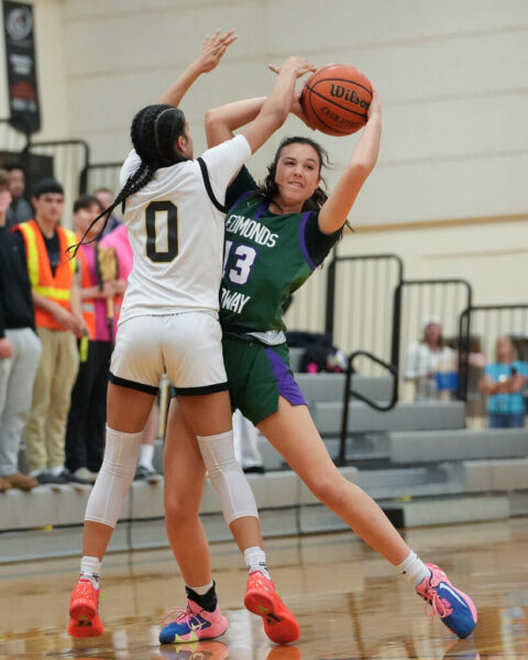 Edmonds-Woodway individual scoring: Natalie Durbin 21, Sydney Stumpf 5, Naomi Limb 5, Finley Wichers 4, Indira Carey-Boxley 3, Madeline Skaar 2, Jasmin Gill 2, Amelia Miller, Abigail Johnson