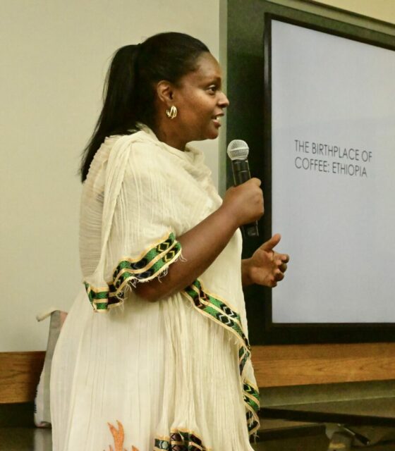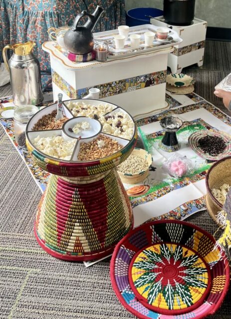 A country of 129 million people, Ethiopia has 90 tribes with over 100 languages spoken, Lucas said. Coffees are tribal specific, and this particular ceremony shared Saturday was from Tigra, a northern Ethiopian tribe. The snacks that accompany the coffee are also representative of the tribe.