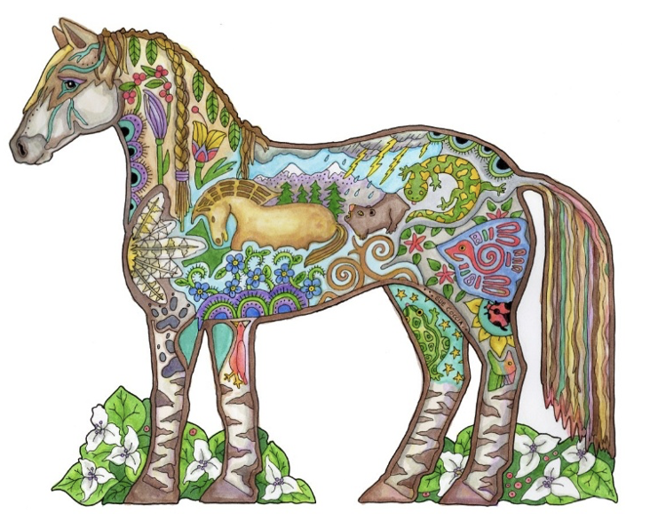 Sue Coccia is well-known for her intricate animal-themed artwork. Trained at the Burnley School for Professional Art, she creates detailed pen-and-ink drawings hand-painted with acrylics and rich with symbolism. Sue’s imagery reflects her deep connection to wildlife, and through EarthArt International — a business she founded in 1996 — she donates a portion of proceeds to conservation organizations. Her work appears in galleries, national parks, and collections throughout the Pacific Northwest and beyond.