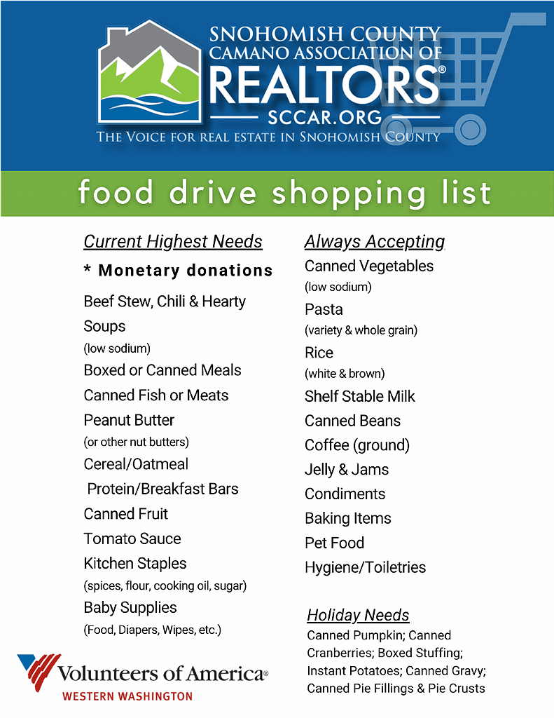Please join us in making a difference. Realtors are raising money to benefit Food Banks of Western Washington in conjunction with the Snohomish County Association of Realtors Food Drive, and any donation will help make an impact. Thanks in advance for your contribution to this cause that means so much to us. Every year Snohomish/Camano Island Realtor offices participate in a drive to collect food for our area food banks. The need is as great at ever!