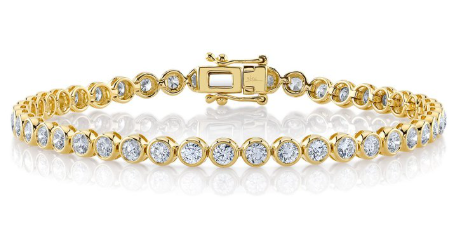 Add effortless style and sophistication to any outfit and any occasion with a tennis bracelet featuring an unbroken line of sparkling diamonds. This style adds a unique and modern touch to the classic tennis bracelet look by incorporating bezel set diamonds and using trending yellow gold. Ideal for younger and older jewelry enthusiasts alike, a diamond tennis bracelet is sure to delight.