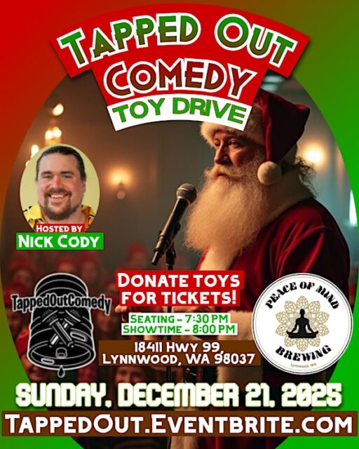 Have a laugh for a good cause at Tapped Out Comedy and Toy Drive Sunday, Dec. 21. It’s a local stand-up comedy showcase hosted by Nick Cody, bringing humor and holiday cheer to Peace of Mind Brewing.