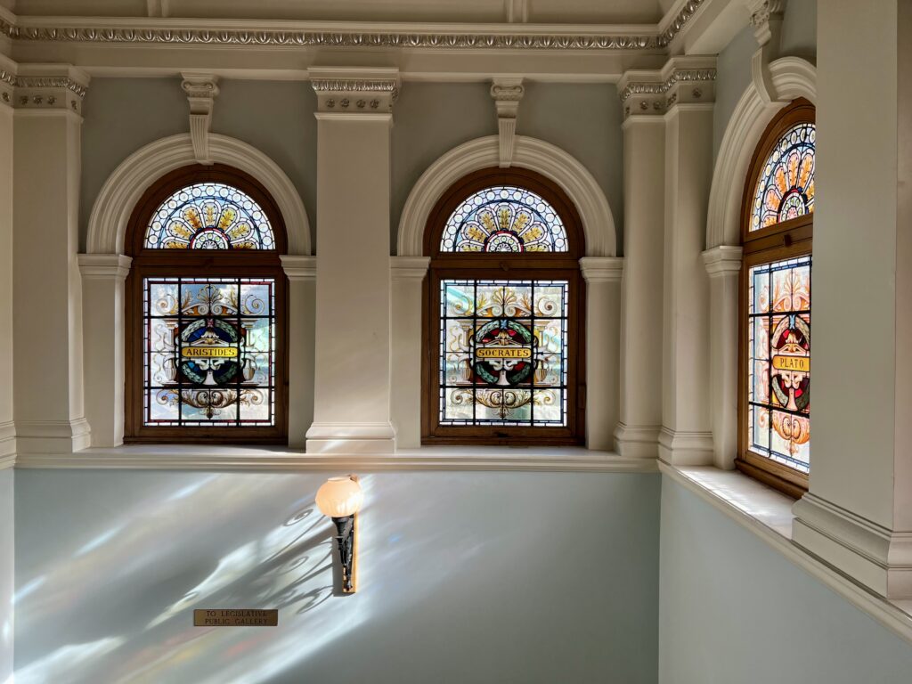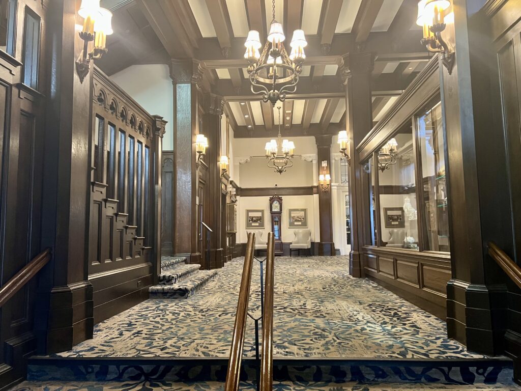 This short visit in a less-clement time of year led us to pass on a drive or shuttle tour to the Gardens. We also passed on visiting the BC Museum and merely wandered through the quaint Empress Hotel “sans doing tea,” as we’ve been there, done that. I at least came close to revisiting the very unique Miniature World dioramas, nestled against the north side of the Empress. There was one thing we had never known of before, until a close friend (who visited Victoria and The Empress SIX times in 2024 via the Clipper with the assistance of the Canadian dollar exchange now at a mere 69 cents U.S.) had made us aware. That is, the remarkable availability of reserved dining at the B.C. Parliamentary Dining room. There are some requirements to honor, but you’ll have a chance to enter this classic building and quietly observe the proceedings of the provincial democracy. Then you go down through a utility corridor and an interior alley into a pleasant dining room and a meal far above the level of a bureaucratic cafeteria.