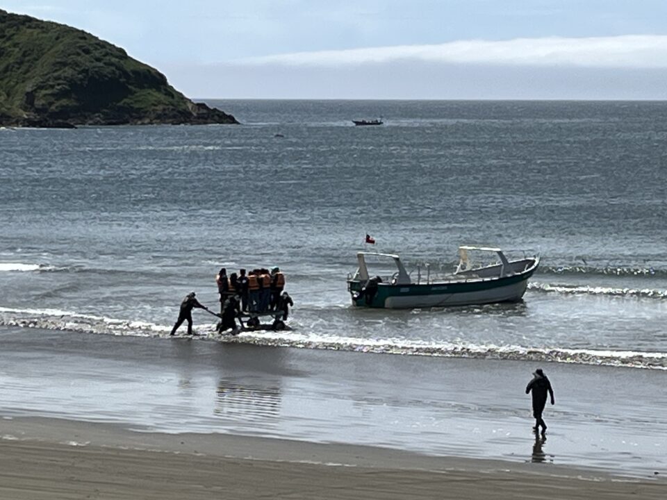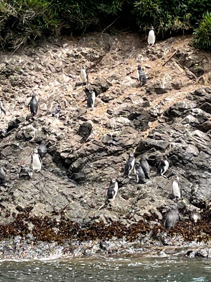 At Puñihuil, we boarded large carts on the beach to be wheeled out to waiting boats in the water. Then we cruised close to the protected Puñihuil Penguin Colony, the only place in the world where Magellanic and Humboldt penguins nest side by side. They’re hard to tell apart – only little pink patches near Humbolt penguins’ eyes and beaks distinguish them from their Magellanic relatives.
