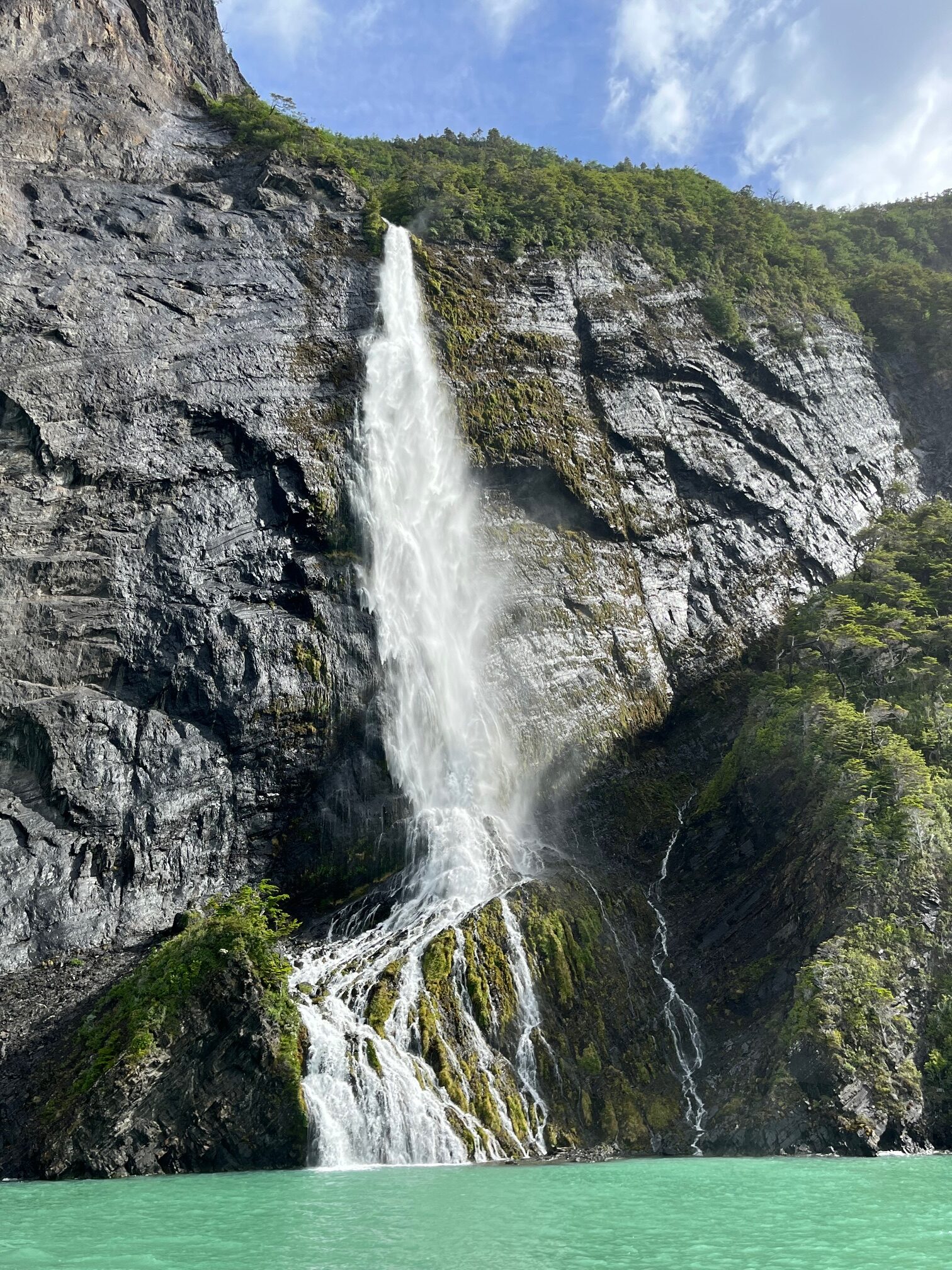 The first highlight was cruising the Ultima Esperanza Fjord to Bernardo O’Higgins National Park, named for the Republic of Chile’s first head of state. We passed a spectacular waterfall, seals resting on rocks and the hanging Balmaceda Glacier. Then we disembarked to hike about a mile to view the impressive Serrano Glacier, which occasionally deposits “bergy bits” into Laguna Serrano.