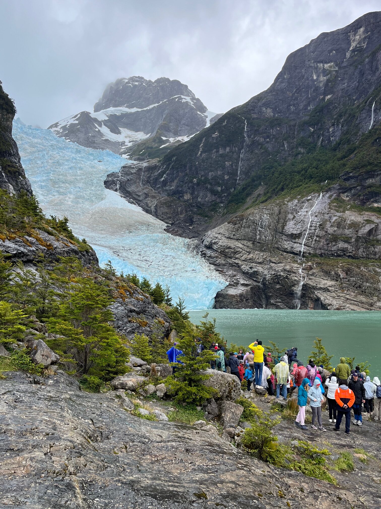 Then we flew to Puerto Natales in the heart of southern Patagonia. Here the scenery dazzles with dramatic mountains, waterfalls, glaciers and fjords. Despite it being summer in Chile, the wind and rain could match our Northwest winter – and then unexpectedly pause as if on cue for photo-taking.