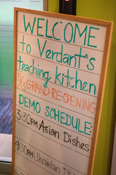 Registered dietitians offered hourly cooking demonstrations at the reopening, including Asian and Ukrainian cuisine. Booths were set up in the main room to offer information about community health programs as well as giving the public the opportunity to meet the Verdant team and commissioners.