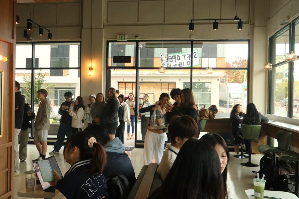 Dozens of people lined up outside of Washington state’s first HeChaLou bubble teahouse in Lynnwood during its soft opening Thursday at 19888 40th Ave. W., Suite A2.